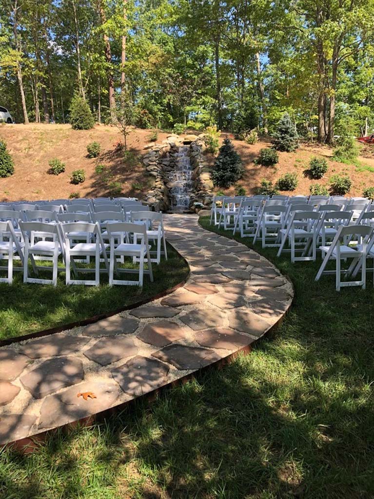 Showcasing the breathtaking beauty of the Smokies, Mountain View Falls Wedding and Event Venue is the largest on-site venue and the only outdoor event space at the resort. Accommodating up to 80 guests, it’s perfect for couples seeking a picturesque, nature-filled celebration. Surrounded by crisp mountain air, a charming stone pathway, and a stunning private waterfall, this idyllic location provides a truly unforgettable backdrop for exchanging vows and sharing your first kiss as newlyweds.